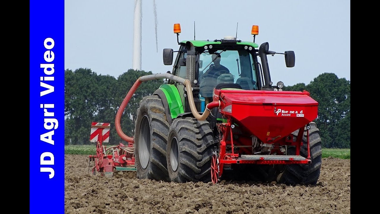 Landbouwers / Farmers uit Zeewolde (Flevoland / The Netherlands/ Nederland) aan het groenbemester zaaien/ sowing / säen met een Deutz Fahr 6190ttv Warrior met Kverneland accord s-drill pro en Kverneland NG-H 101 en een Deutz-Fahr Agrotron TTV 630 met een Evers Waler cultivator