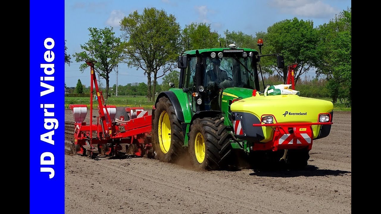 Loonbedrijf/ contractor Doornwaard uit Oosterwolde (The Netherlands/ Nederland) aan het Mais zaaien/ Seeding maize/ Corn planting/ Mais aussaat in Hulshorst met een John Deere 6430 met een Kverneland zaaimachine.