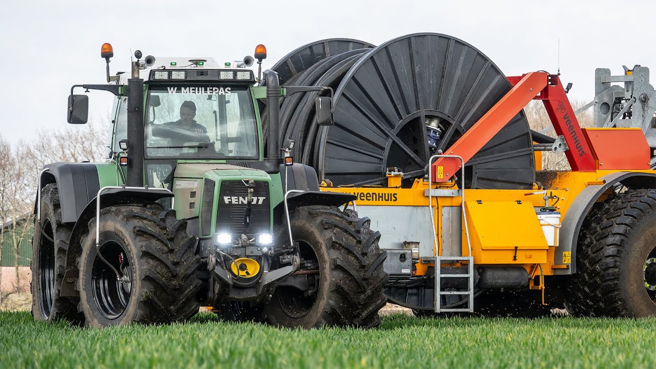 Loonbedrijf W. Meulepas uit Mill – Een hele dikke Fendt Favorit 926 met zwarte velgen en luchtdruk op de banden was aan het sleepslangen en een Scania R580 V8