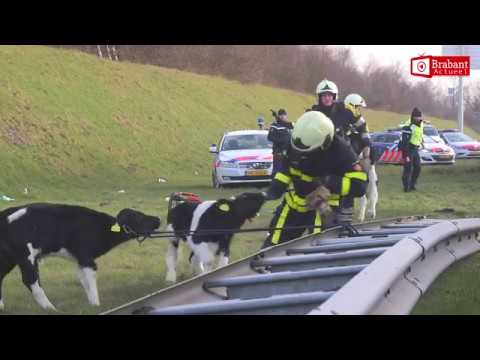 in videosVrachtwagen met kalveren gekanteld in hazeldonk