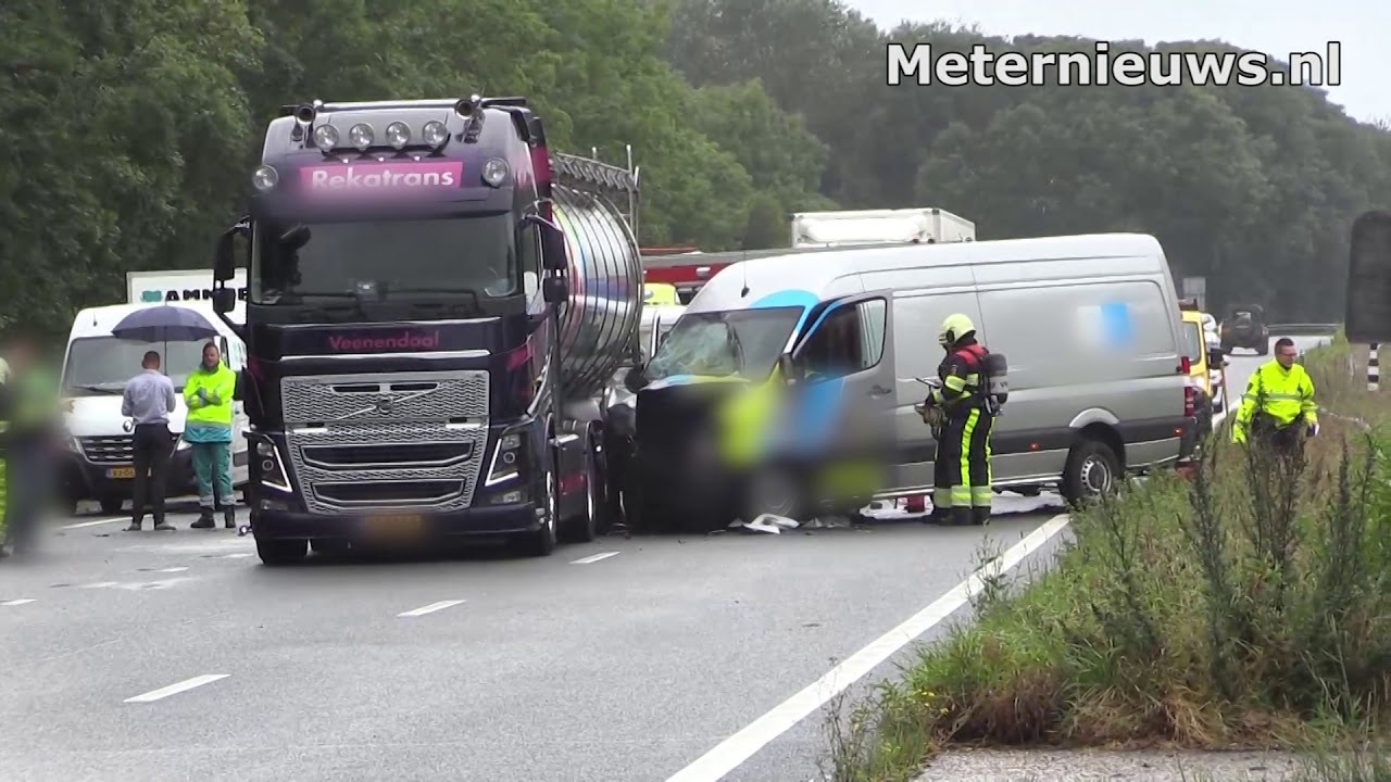 in videosVrachtwagen met bekend logo betrokken bij ernstig ongeluk.op A7 bij Bolward.
