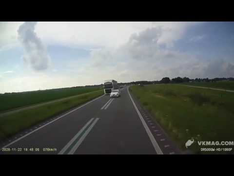 in videosDat ging nog maar net goed, vrachtwagen inhalen