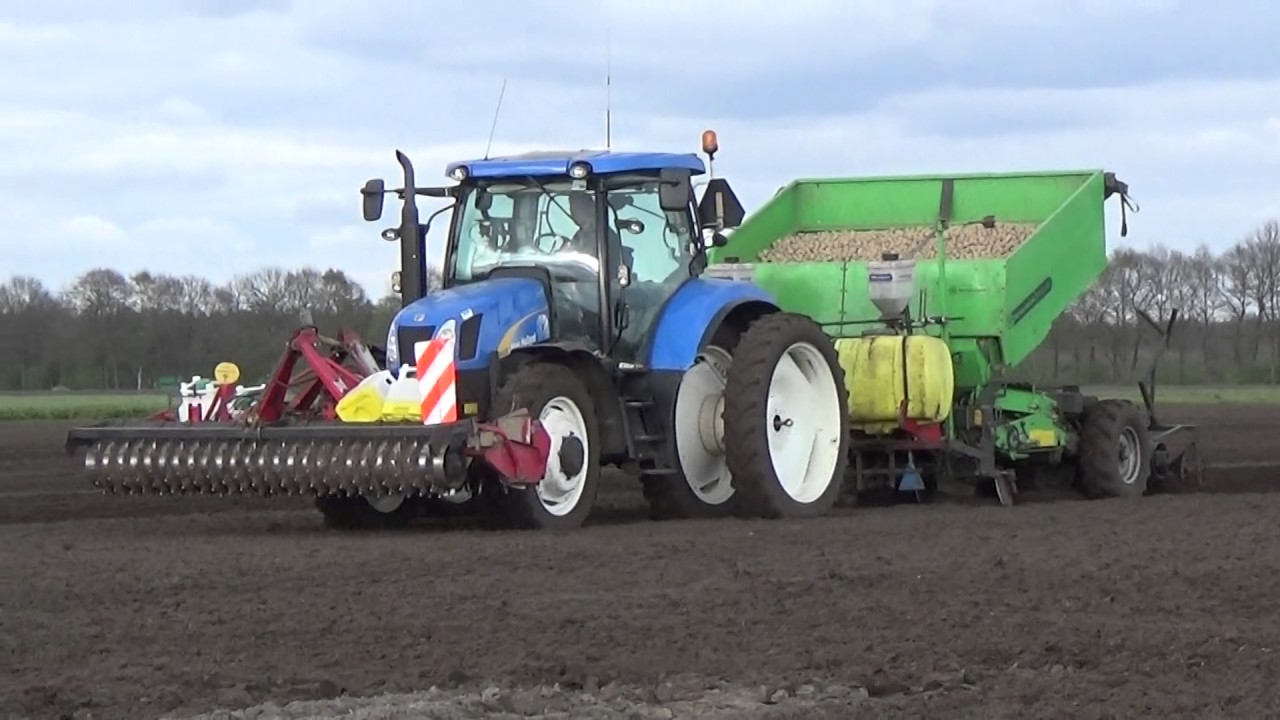 in videosnew holland t 7.200 met een structural pm 40 aardappels poten