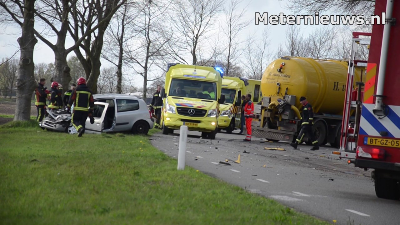 in videosAutomobilist gewond na botsing met tankwagen met mest in Vlagtwedde