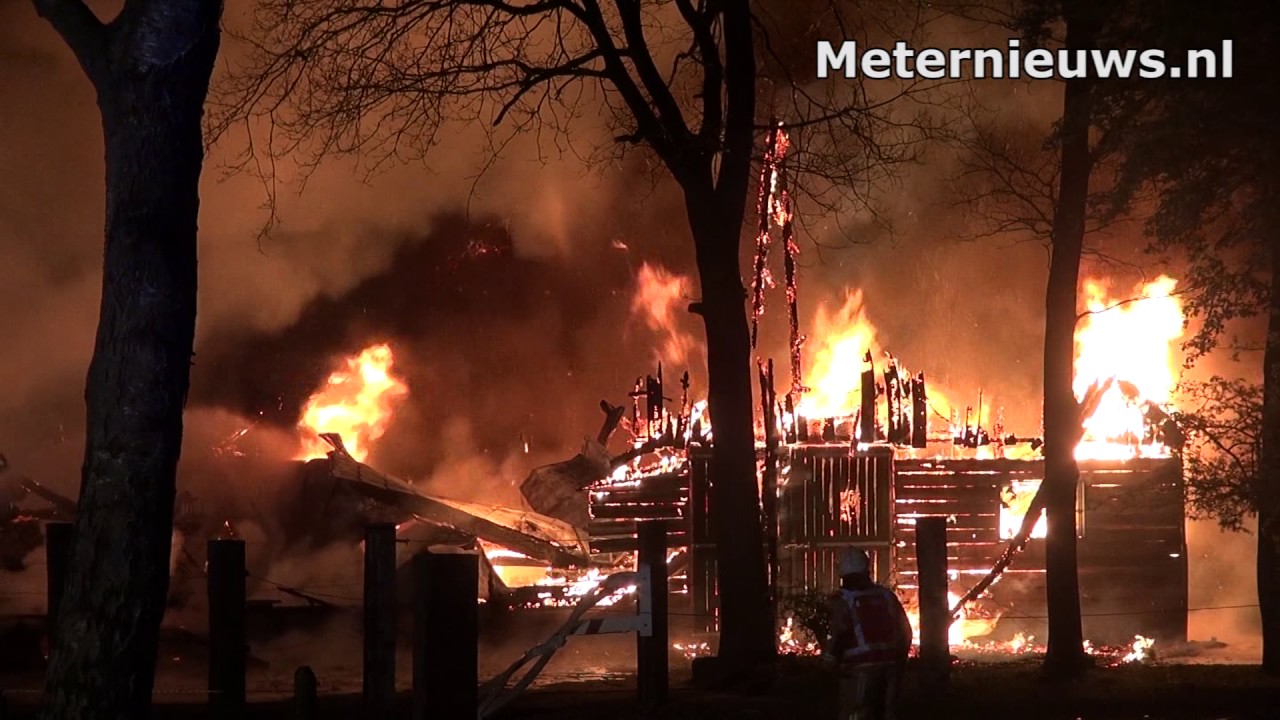 in videosGrote brand in 2 schuren met Hooi