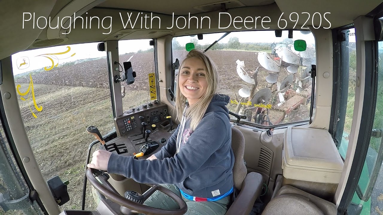 in videosLeanne aan het ploegen met een John Deere 6920S