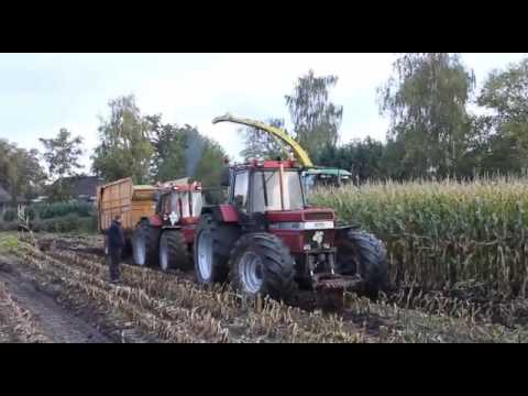 in videos2x Case international 1455 moeten ploeteren bij het mais hakselen