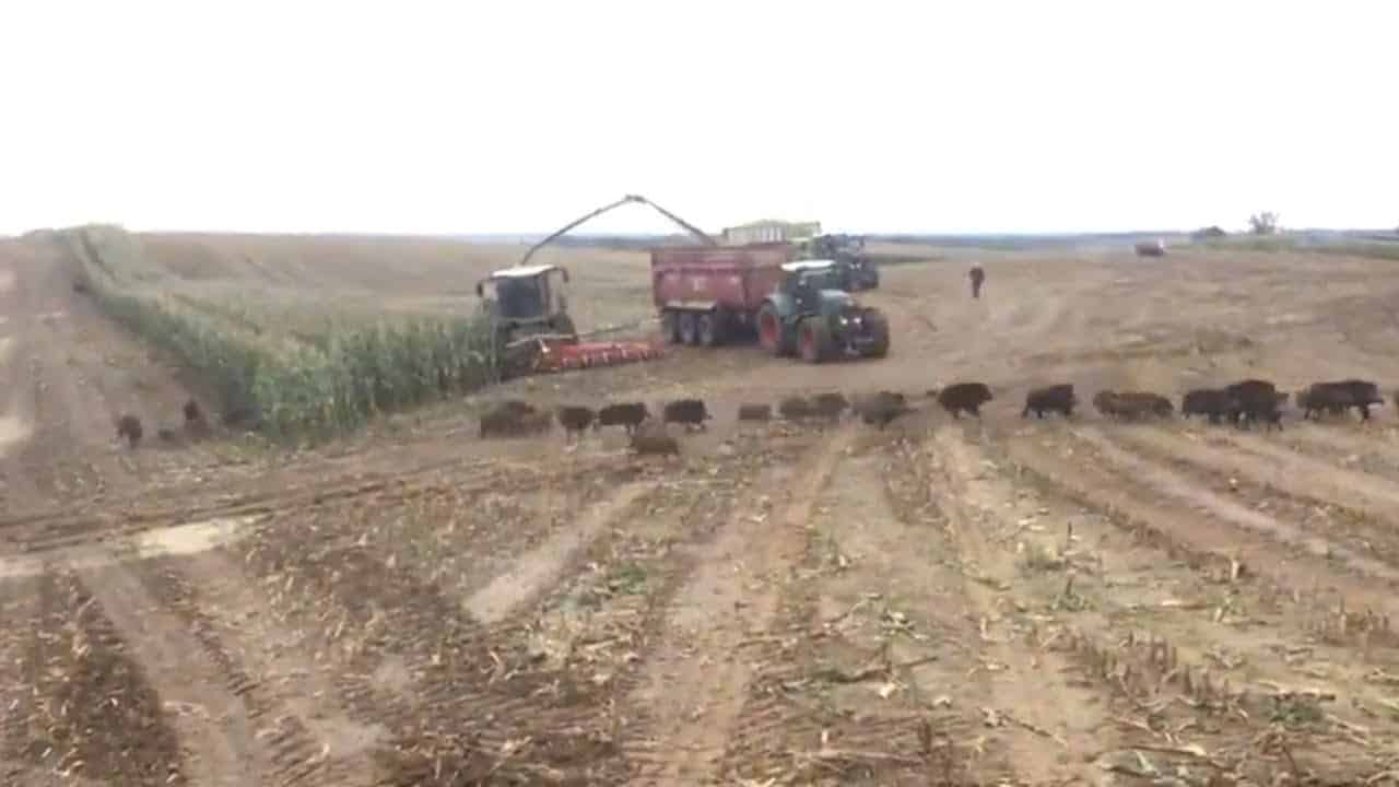 in videosHoeveel wilde varkens zitten er in dit stuk mais?!