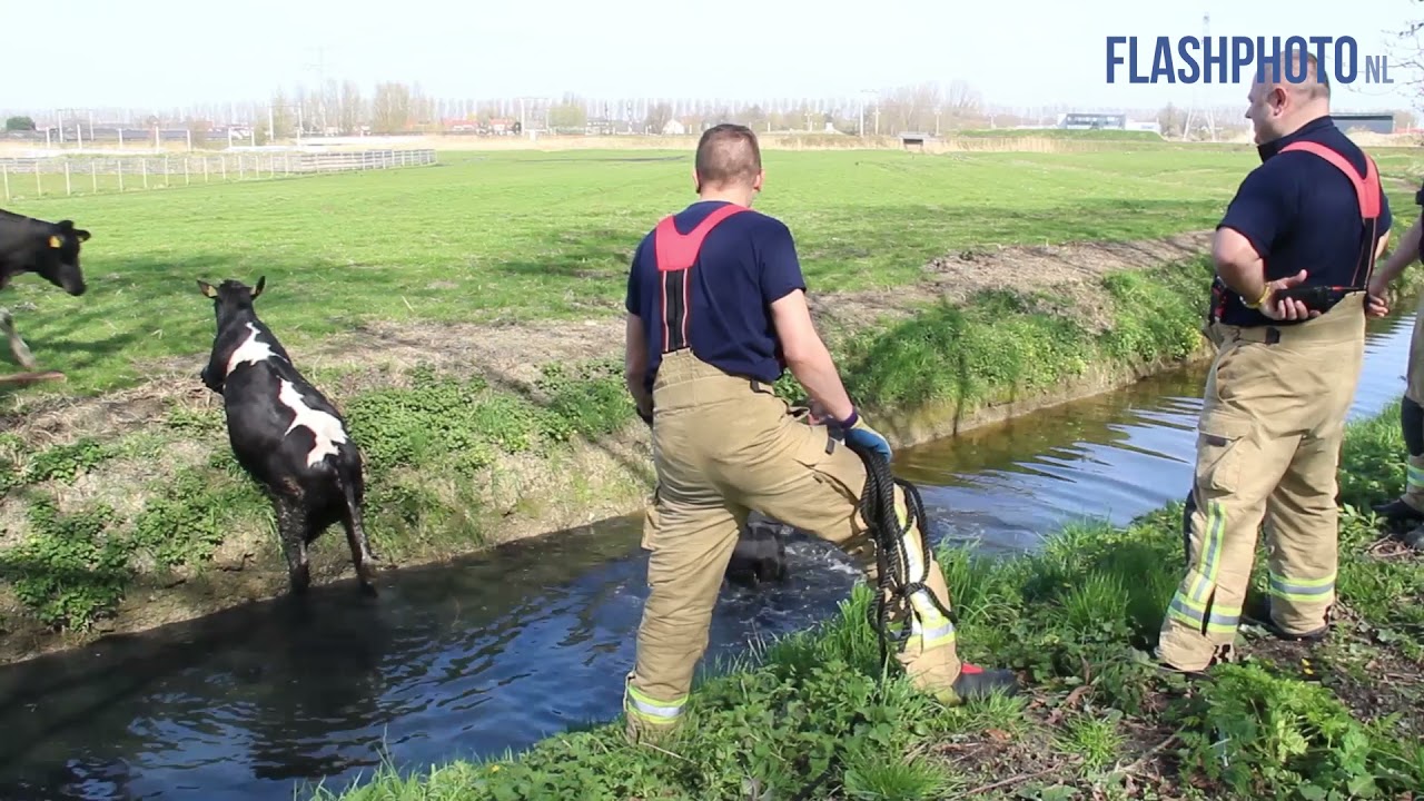 Operatie koe in/uit de sloot trekt veel publiek Schiedam – Aan de Abtsmolenpad is woensdagmiddag een koe te water geraakt.