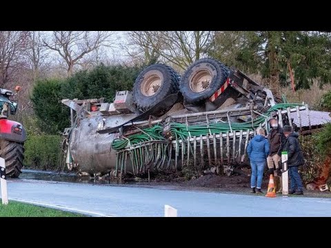 in videosMest liep het huis in | Drijfmesttank gekanteld in Duitsland op 3 auto’s | bestuurder gewond