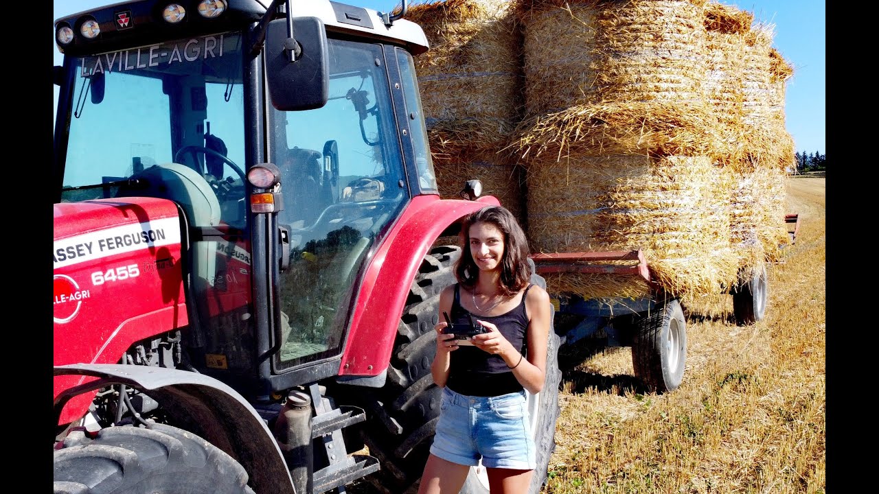 Elisa brengt de ronde balen stro van het land naar de schuur……….. Elisa AgriPassion