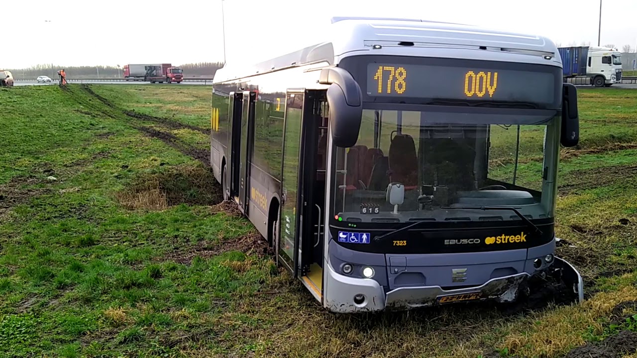 in videosDe lijnbus die dinsdagmorgen boven een sloot eindigde, is weggetakeld. De bus vloog bij een afrit van de A7 bij Groningen uit de bocht283
