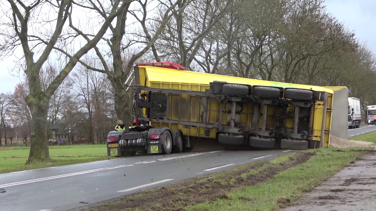 in videosMeppel….. Een vrachtwagen geladen met zand botst met een personenauto..Eén persoon raakte zwaar gewond……… Meternieuws