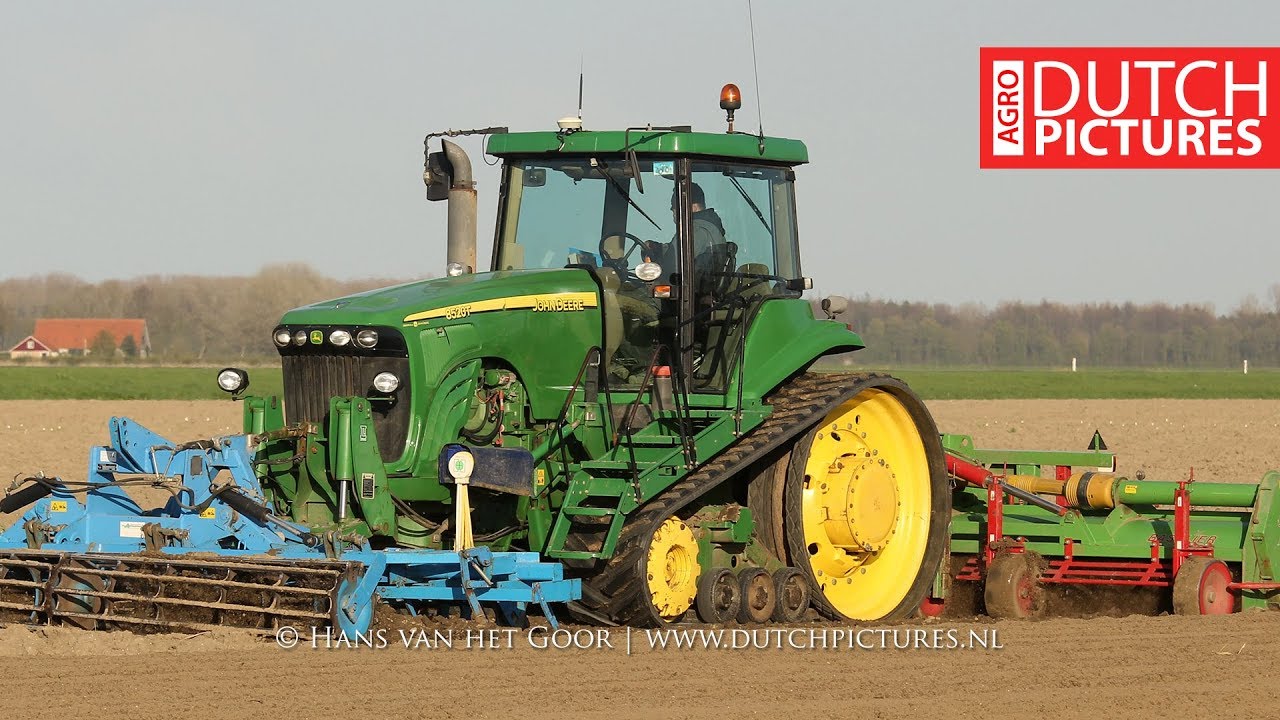 Aardappelruggen frezen 8 rijer met een John Deere 8520T Baselier | 2018 Hans van het Goor Agriculture Videos