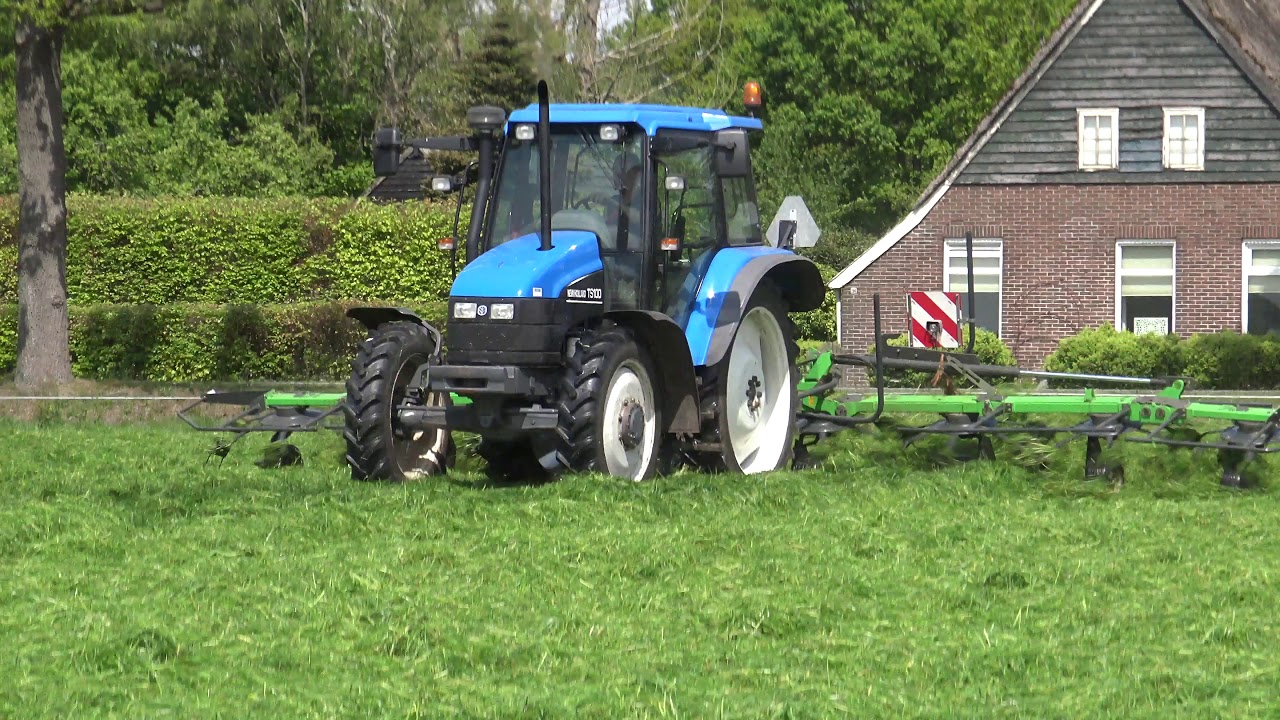 in videosGRAS SCHUDDEN MET EEN NEW HOLLAND TS 100 DEUTZ FAHR