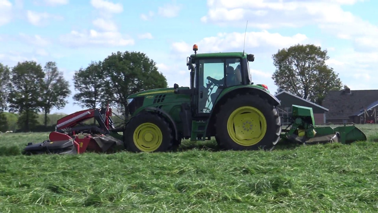 in videosGRASMAAIEN MET EEN JOHN DEERE 6125 R JOHN DEERE 328 MAAIERS