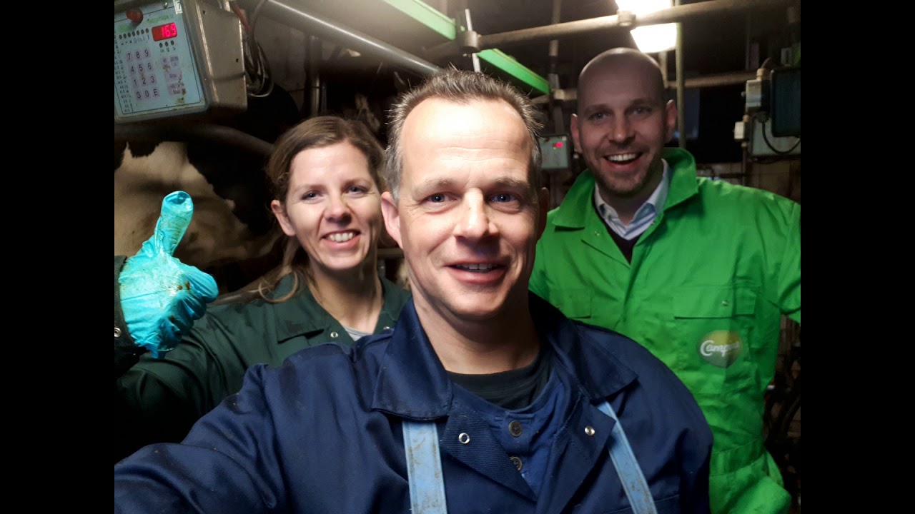 Boer Gerrit vlogt -Twee medewerkers van FrieslandCampina willen ook wel eens weten waar de melk vandaan komt .