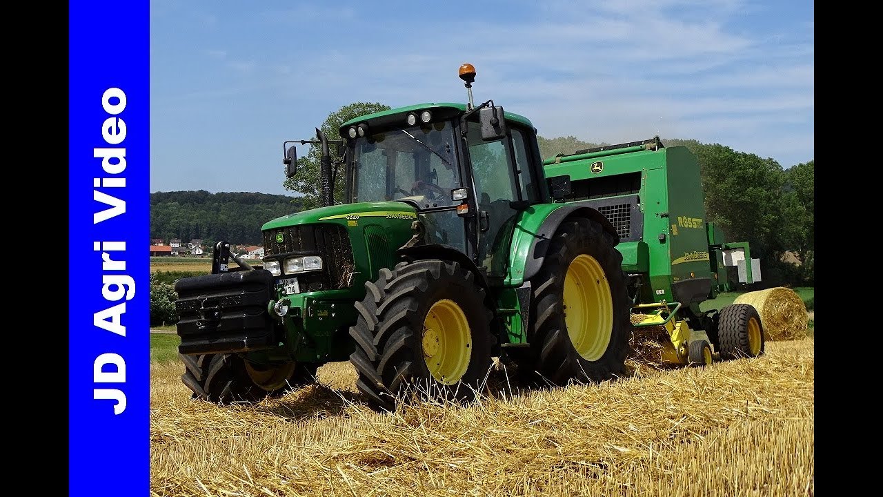 Machines: John Deere 6320 met John Deere 582 ronde balenpers.